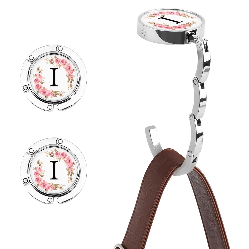 2PCS Lettre A-Z Crochet de Sac à Main, Accroche Sac à Main Initial Personnalisé pour Table, Porte Sac à Main Lettre Florale, Porte Sac à Main Pliable pour Femme, Crochet de Sac à Main pour Table (I)