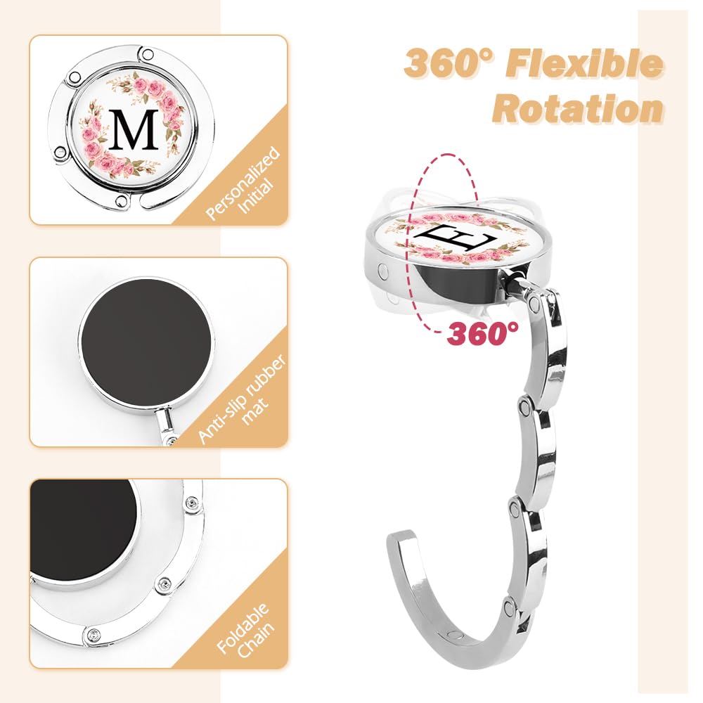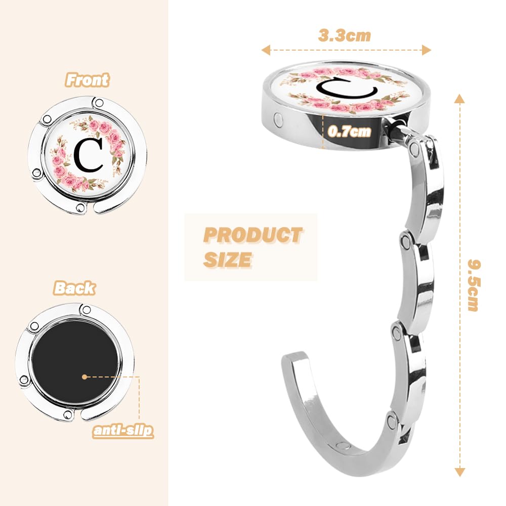 Détails: 2PCS Lettre A-Z Crochet de Sac à Main, Accroche Sac à Main Initial Personnalisé pour Table, Porte Sac à Main Lettre Florale, Porte Sac à Main Pliable pour Femme, Crochet de Sac à Main pour Table