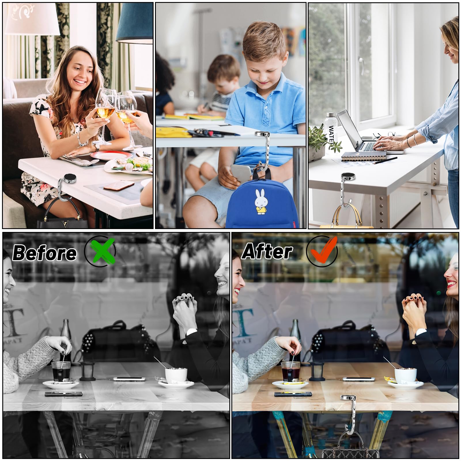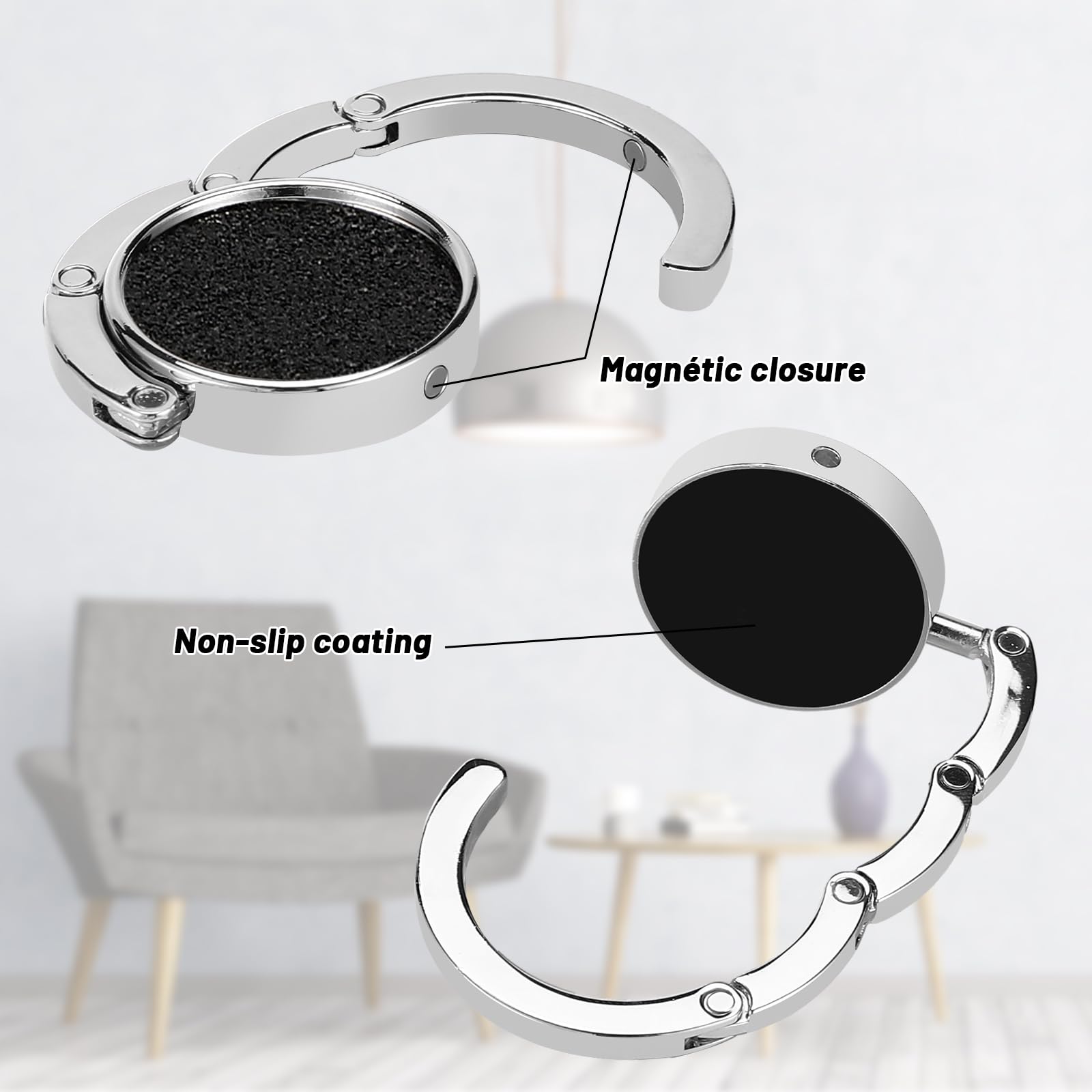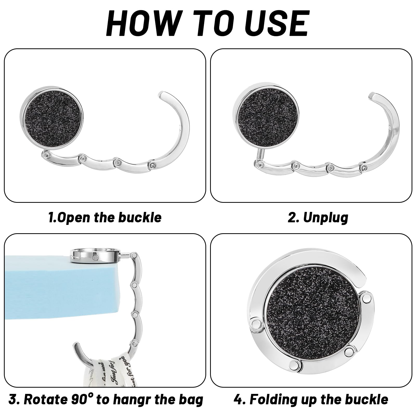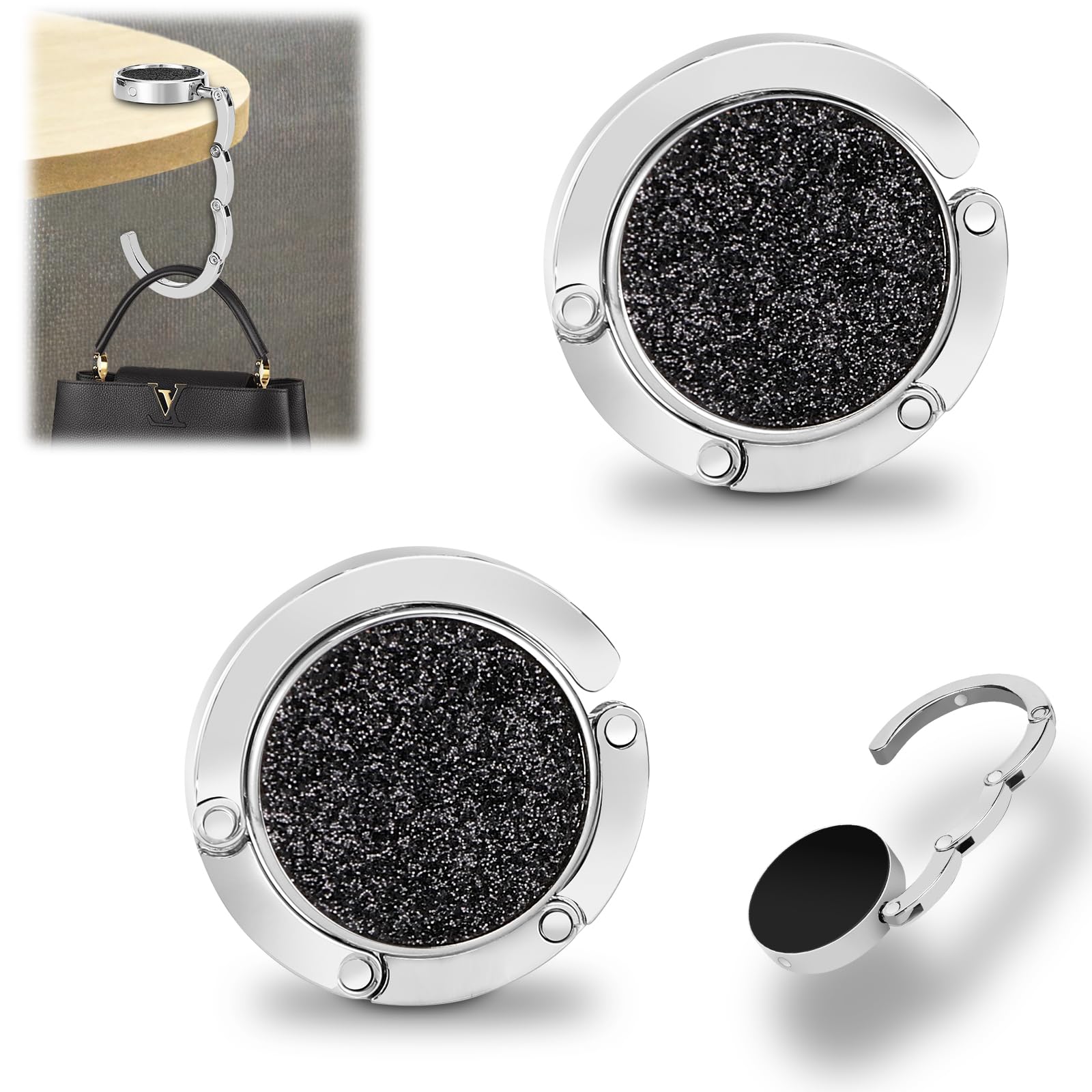 Auauraintt Lot de 2 crochets de table et de sac, pliable, antidérapant, jusqu'à 3 kg, pour sacs au bureau, restaurant, cintre à vêtements (noir flash)