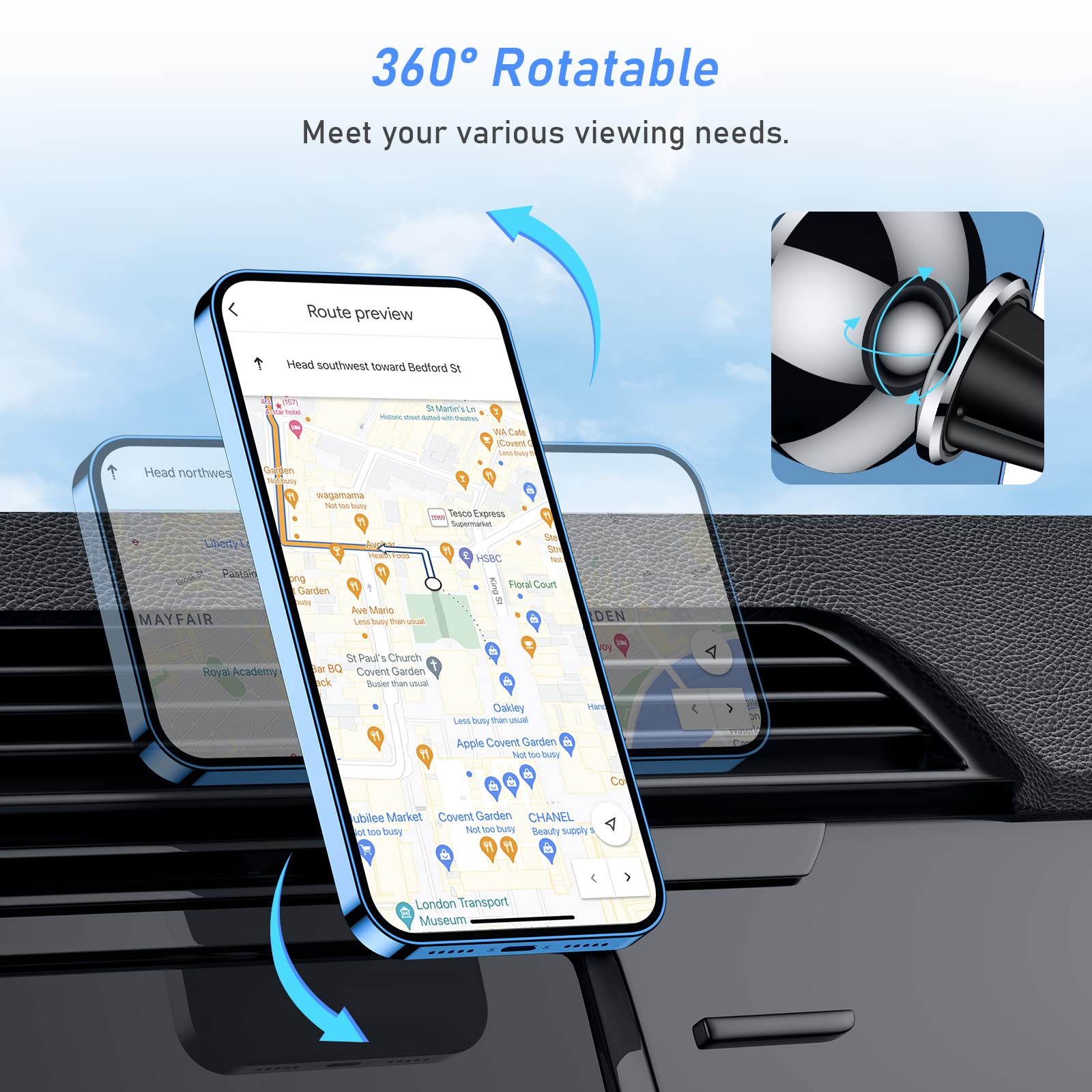 Blukar Support Téléphone Voiture Magnétique, Porte Telephone Voiture Aimanté Grille Aération, Super Solide Facilité&d'installation&Aimant Puissant&360°Rotation pour iPhone 17/16/15& 4-6.7" Smartphone