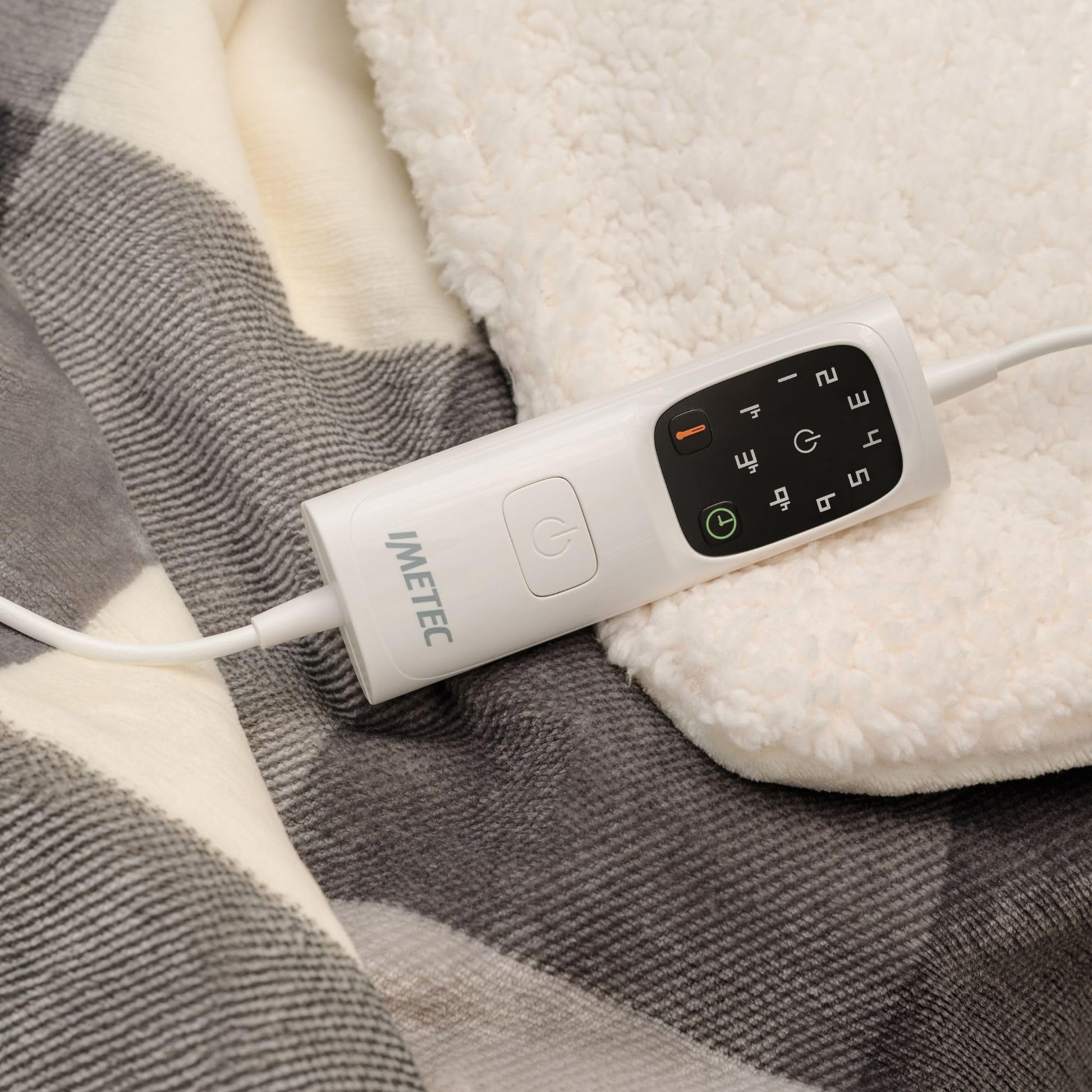 Imetec CaldoPlaid Tartan Grey, plaid chauffable, couverture électrique douce 160 x 120 cm, faible consommation, technologie adaptée, dispositif de sécurité, chauffage rapide, 6 températures, lavable