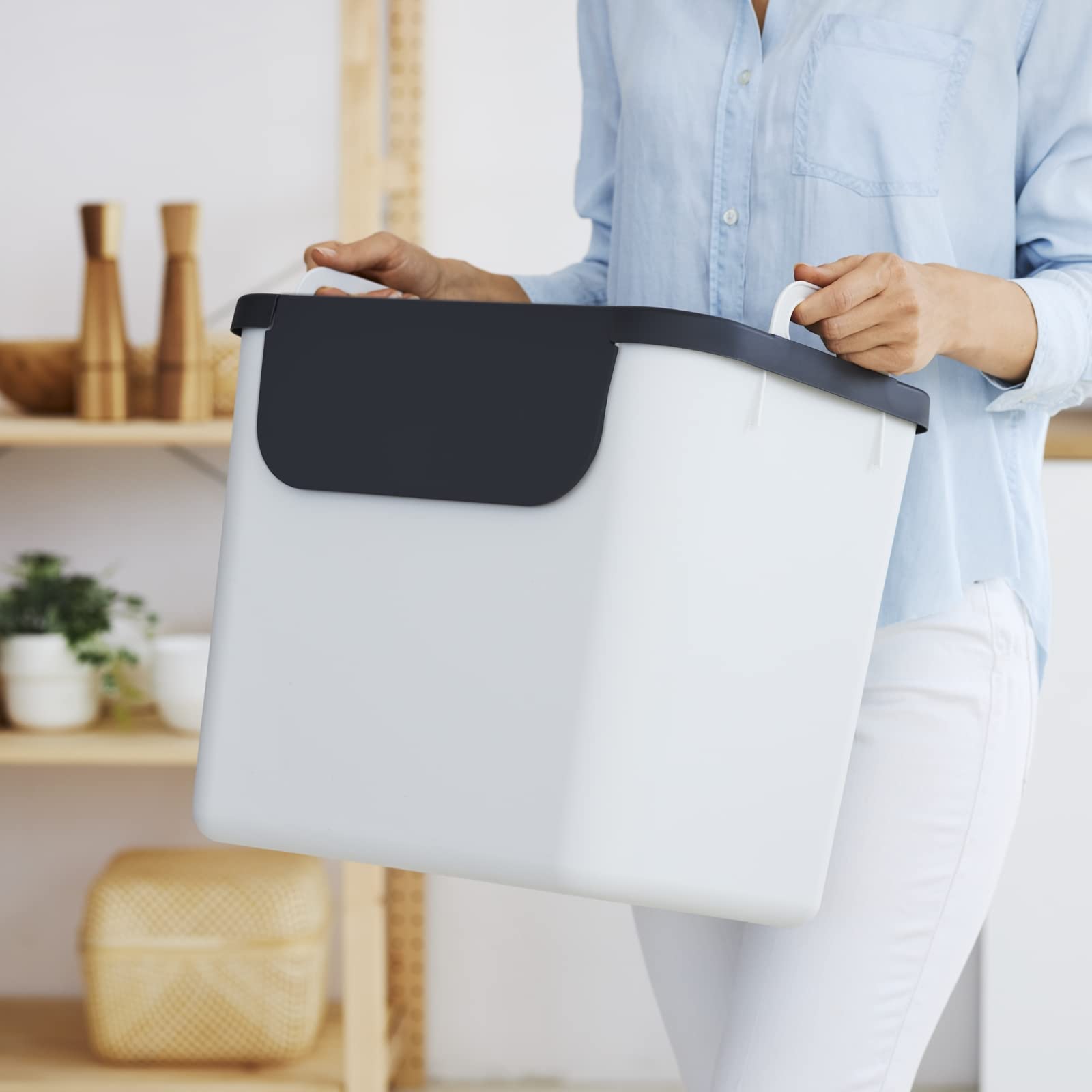 - Set de 3 poubelles de 30 l | Poubelle avec deux poignées et couvercle | 38,5 x 28,6 x 48,5 cm (LxlxH) | Collecteur dans les couleurs bleu (sky blue), blanc (mistletoe white) et noir (charcoal black), couvercle noir