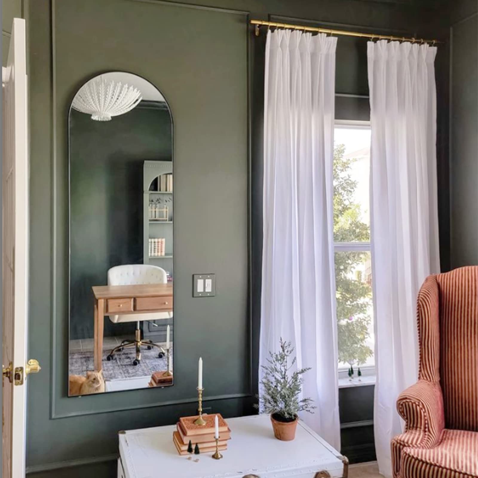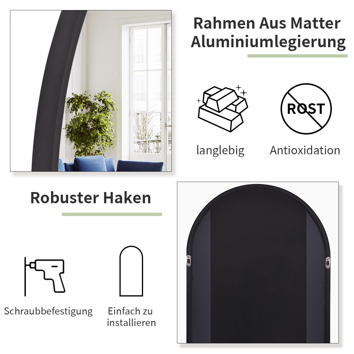- Plusieurs méthodes de placement : Ce miroir complet arc est livré avec un support en forme de U que vous pouvez placer librement dans le salon ou la chambre à coucher. Pour votre commodité lors de la suspension au mur, deux crochets sont conçus à l'arrière du miroir.