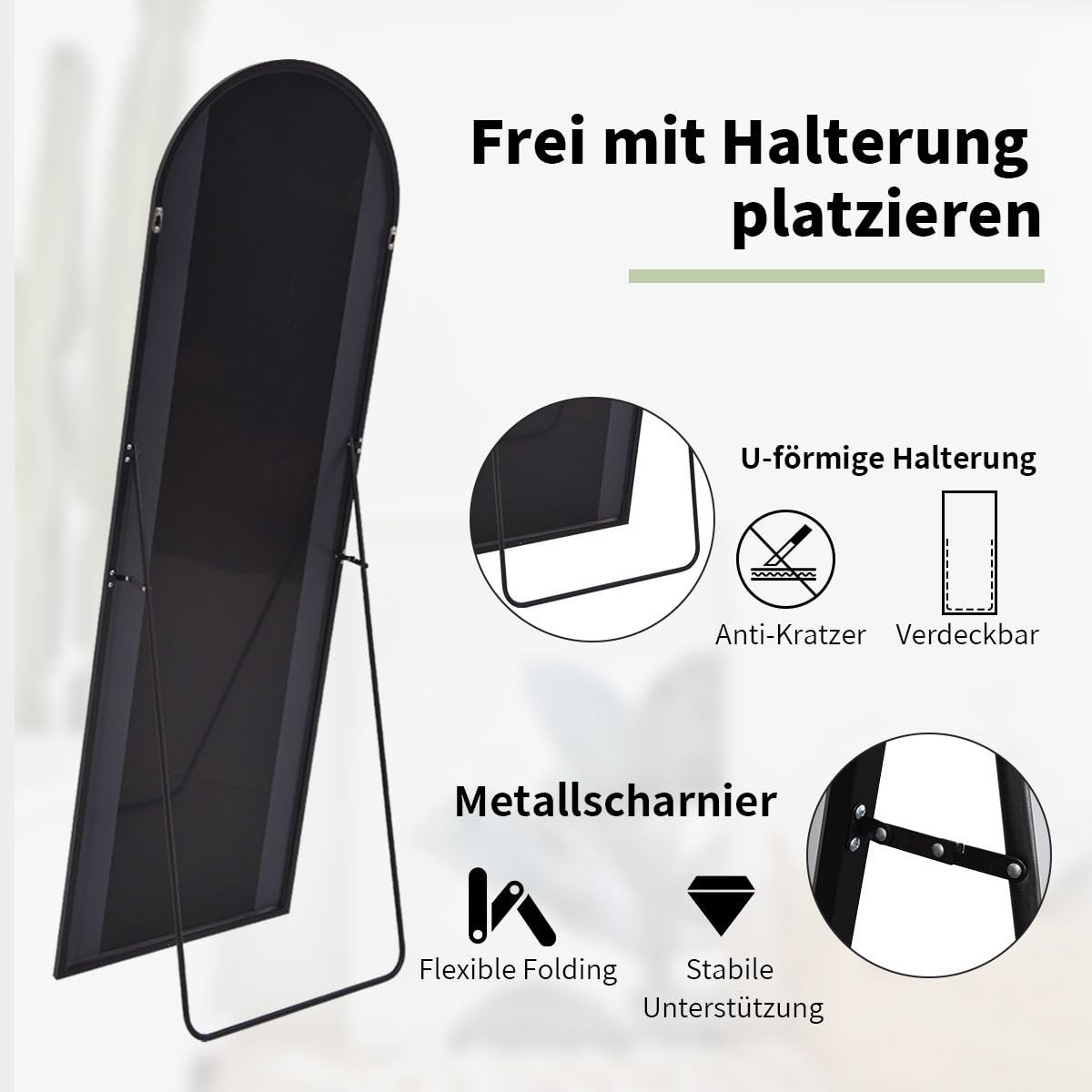 - Design tendance : Le cadre en alliage d'aluminium incurvé donne une sensation de luxe et de mode. En plaçant le miroir sur pied dans le salon ou l'entrée, il ajoute non seulement une touche d'unicité à votre pièce, mais en fait également une décoration parfaite pour votre chambre.
