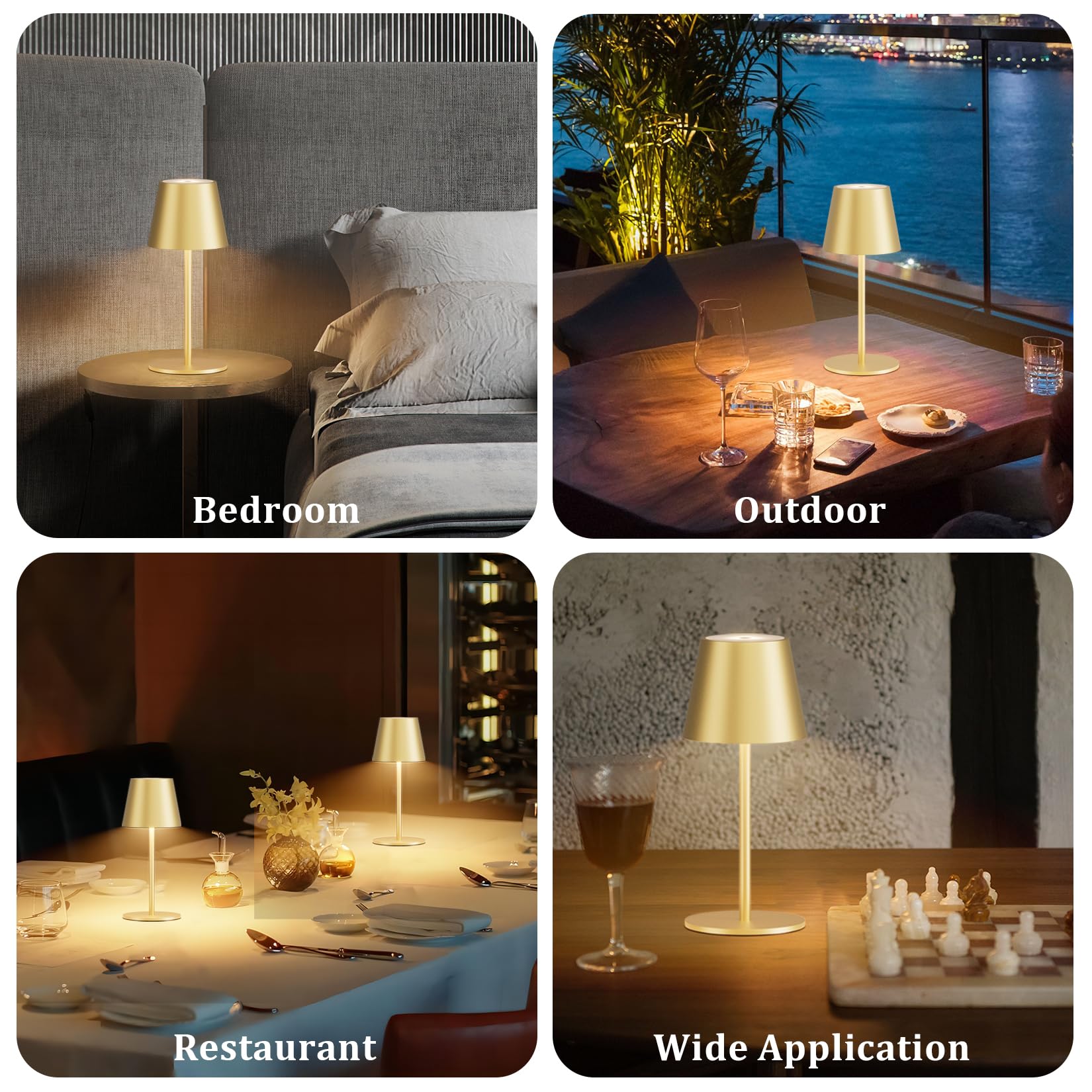lundwa 2 pièces lampes de table LED à intensité variable, sans fil, rechargeables, couleur de lumière chaude 3000K, USB-C, aluminium, IP54,Pour le salon, le jardin, la salle à manger(Or mat)