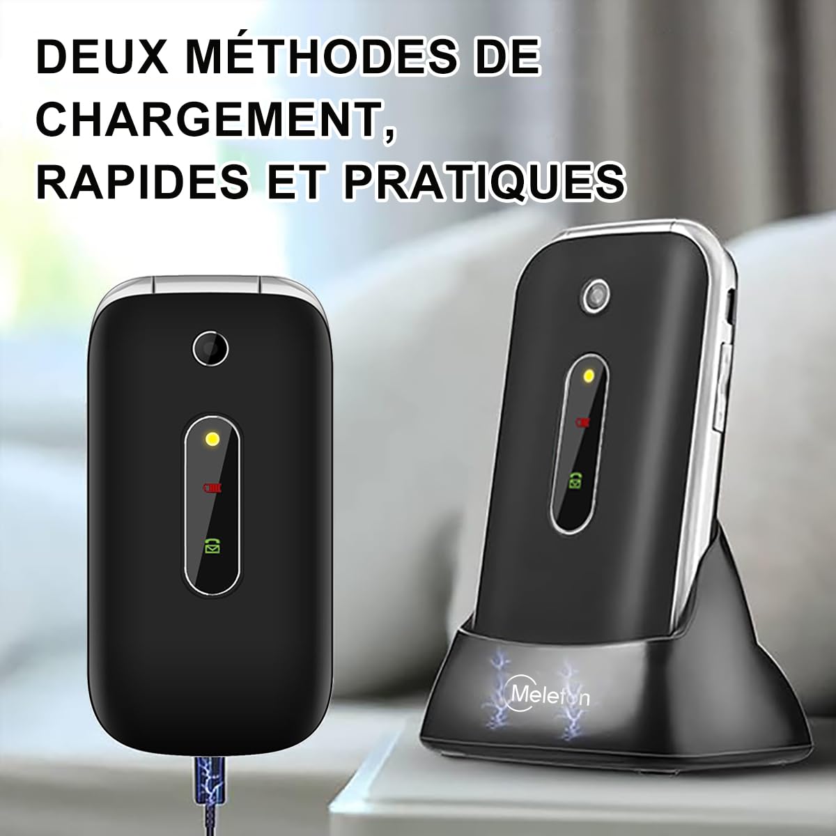 Melefon Téléphone Portable à Clapet pour Senior avec Bouton SOS,Touches d'Appel Rapide - Le pour Vos Parents