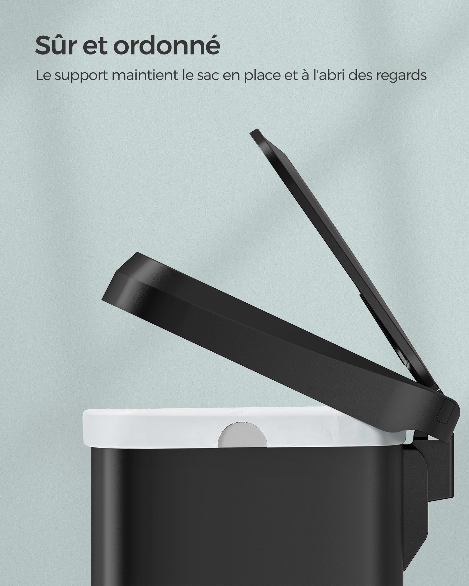 - [Fermeture silencieuse et maintien en ouverture] Cette poubelle dispose d’un couvercle silencieux qui se ferme en douceur, sans bruit désagréable. Le couvercle peut être maintenu ouvert si vous l’ouvrez à la main jusqu’à un point de blocage