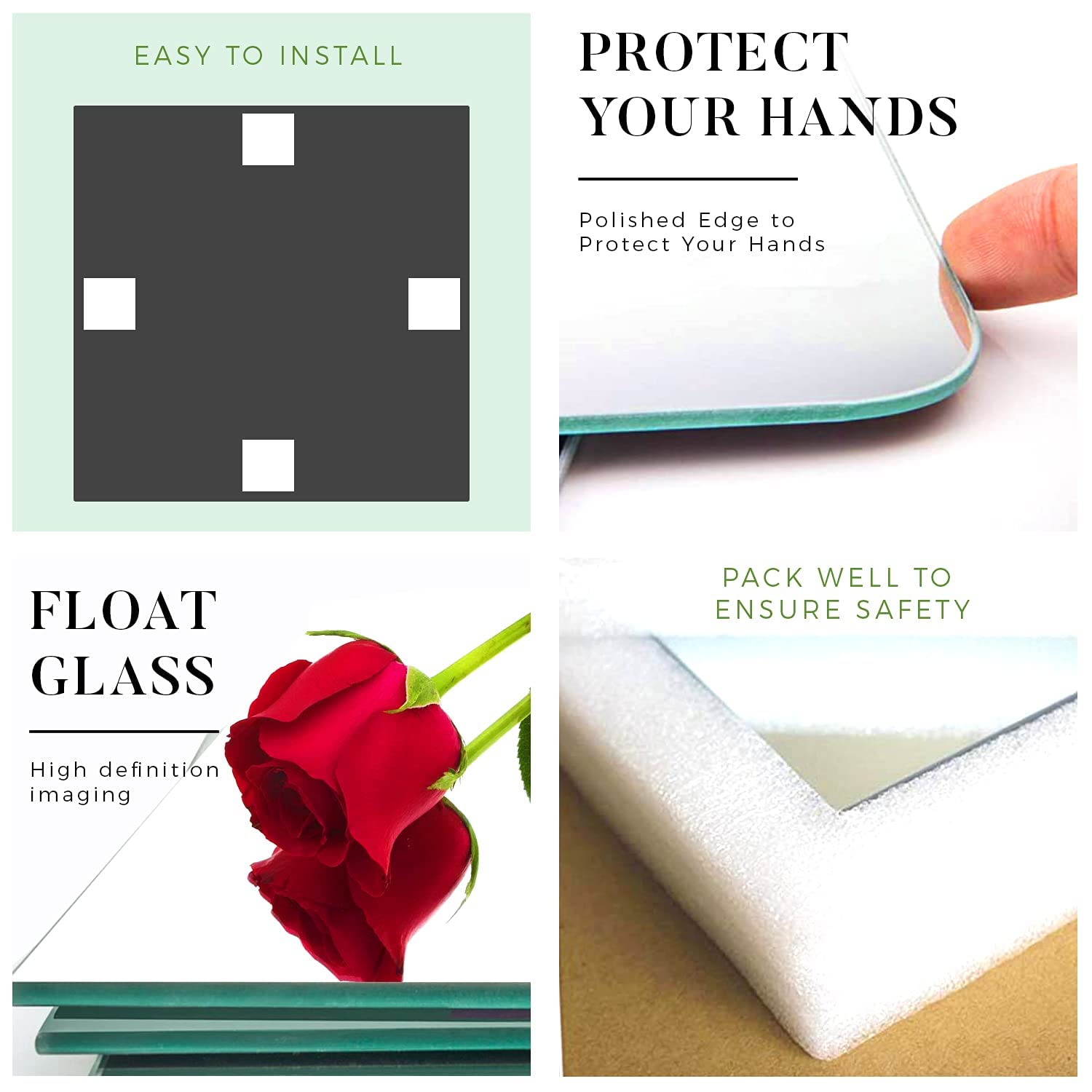 - MIROIR ADHESIF MURAL EN VERRE: miroirs à coller avec bord poli, fournissant une image HD, taille 35 x 35 cm, épaisseur 2 mm, 4 pièces par paquet