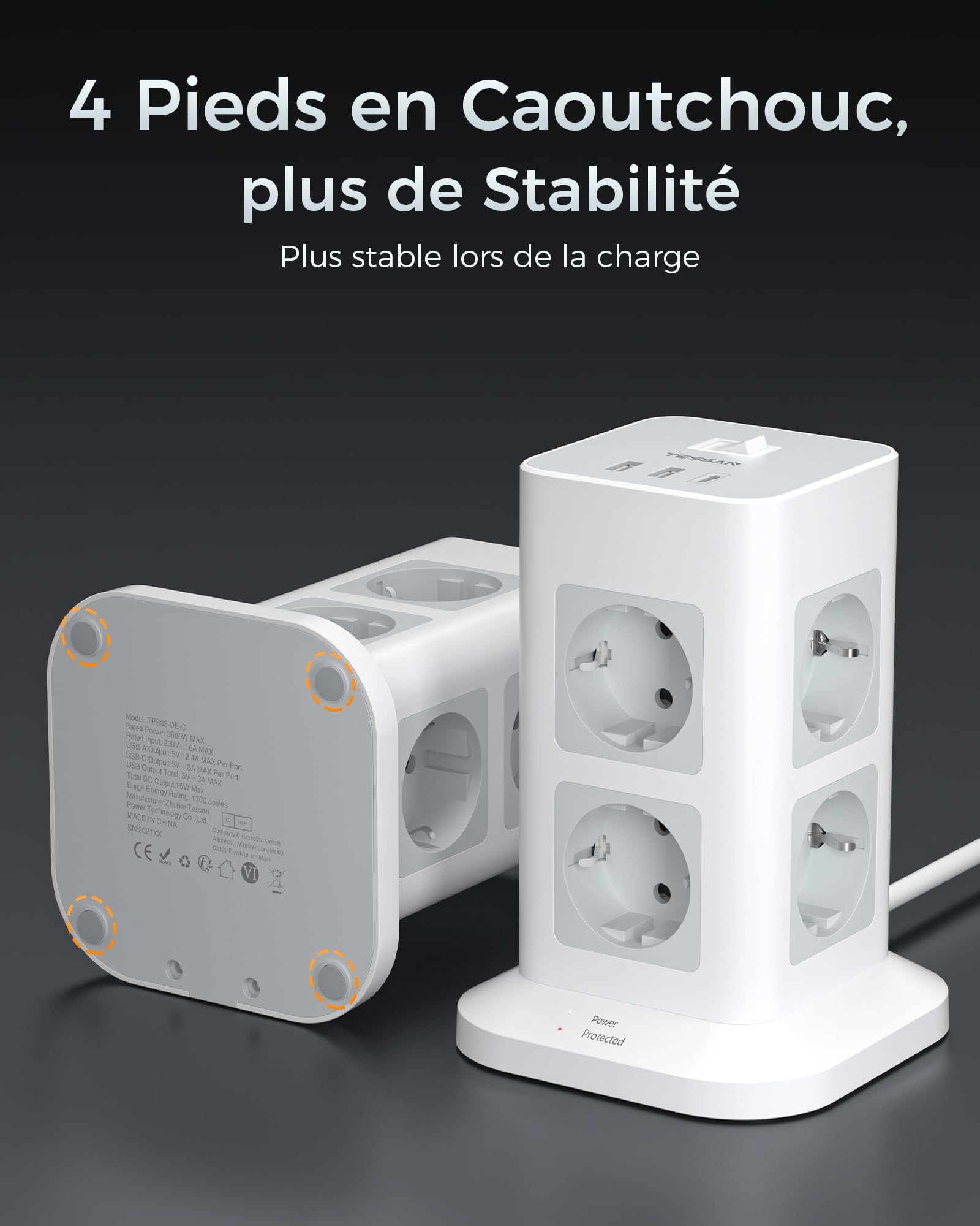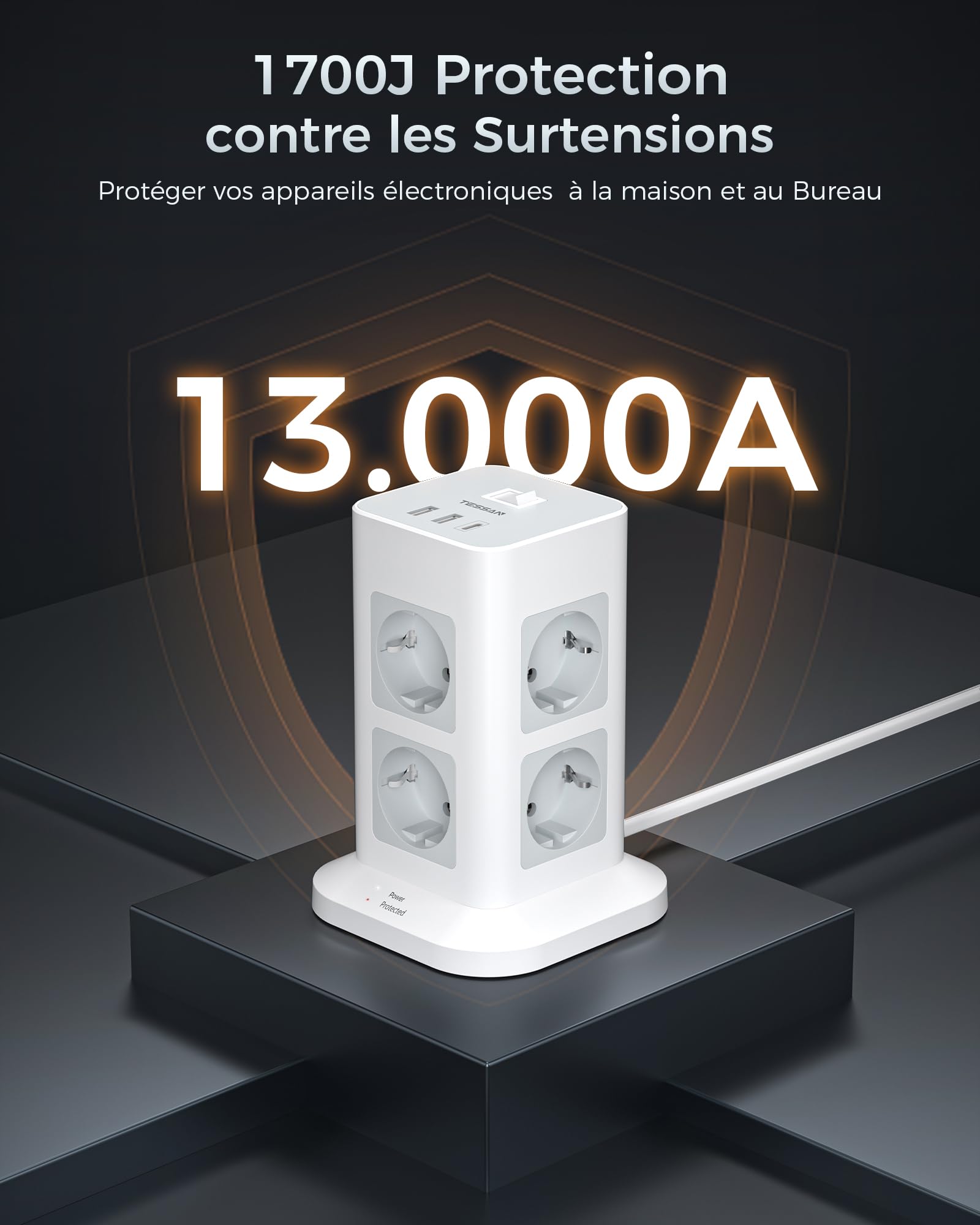 - Tour Multiprise Parasurtenseur: 1700J multiprise parafoudre peut protéger votre équipement électronique contre les surtensions et les pointes soudaines. La puissance maximale de l' bloc multiprise electrique usb c peut atteindre 3600W