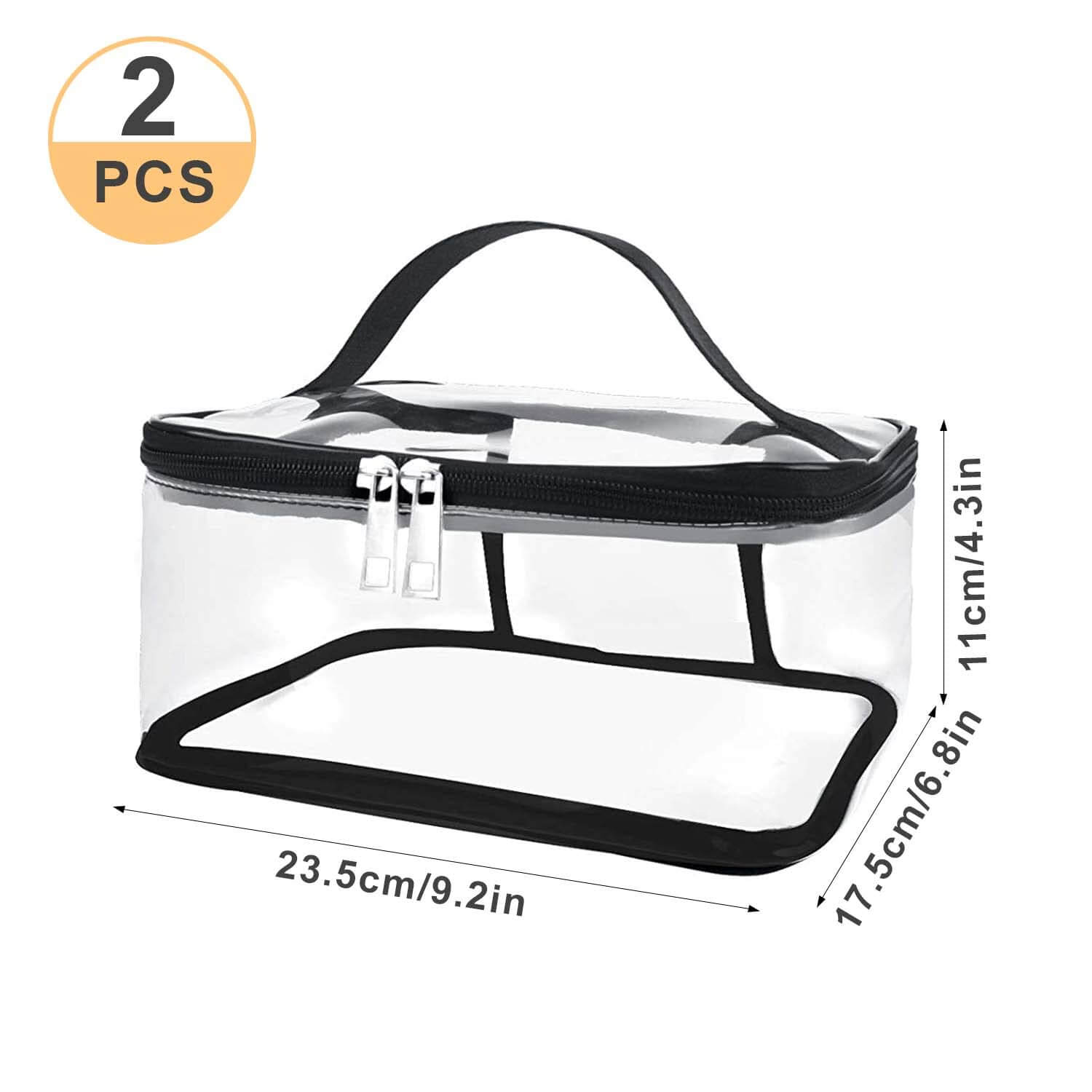 Dimensions du sac cosmétique transparent : 23,5 x 17,5 x 11 cm / 9,2 x 6,9 x 4,3 pouces (L x l x H)