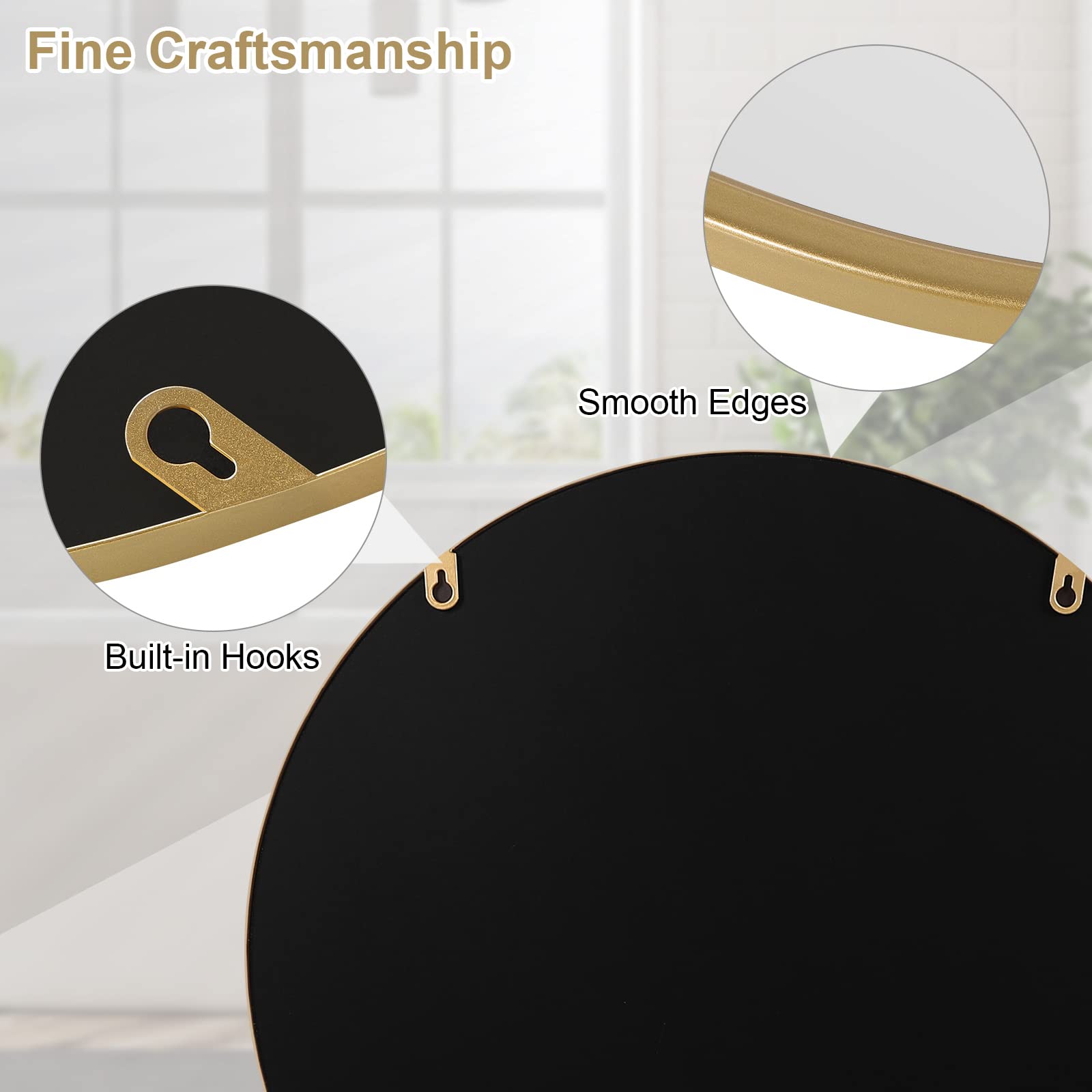 - MIROIR MURAL SUSPENDU : Les 2 crochets sur le cadre vous permettent d'accrocher ce miroir circulaire où vous voulez ou de remplacer votre ancien miroir de chambre, tant qu'il y a une bonne position sur le mur pour que vous puissiez l'accrocher