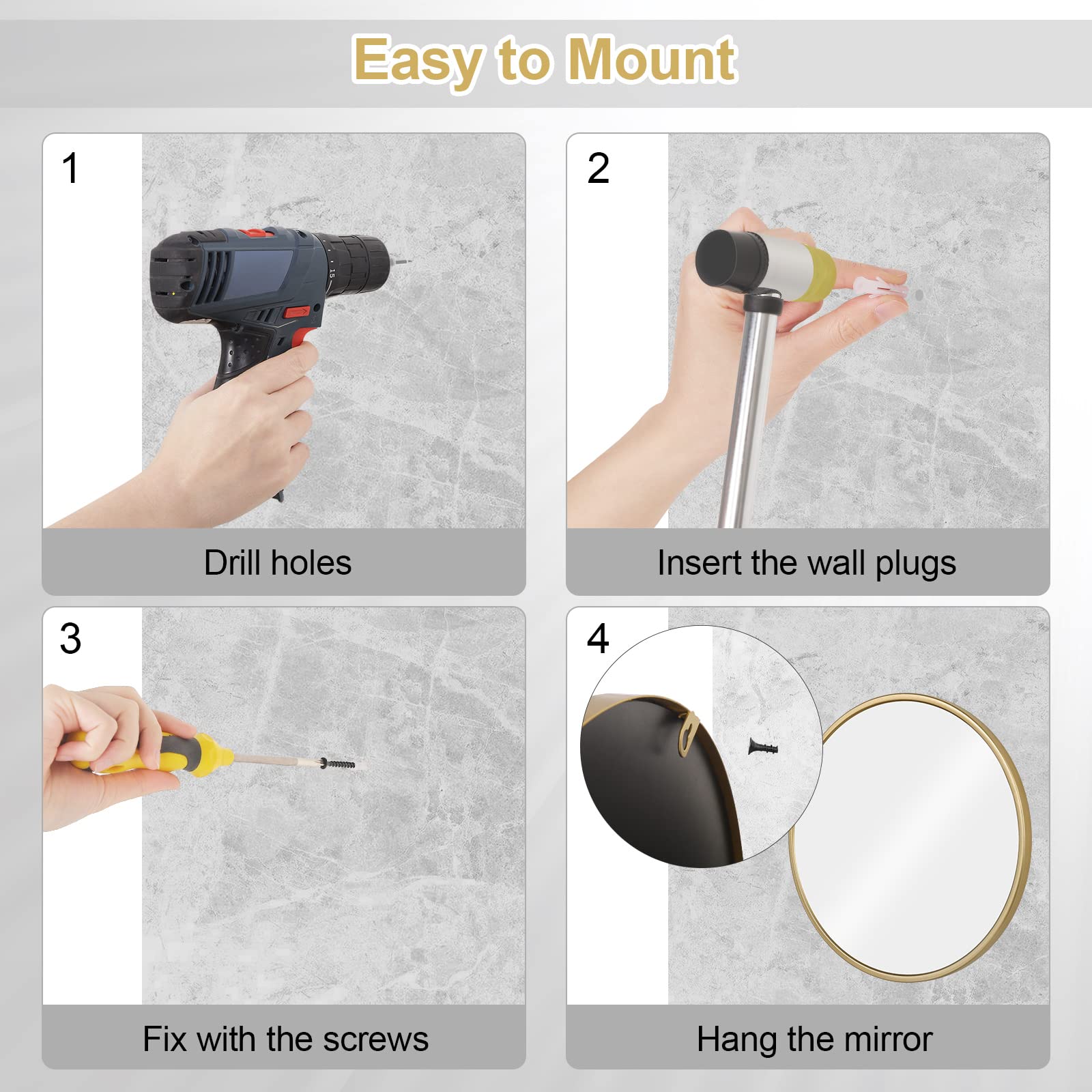 - INSTALLATION FACILE: Le miroir doré est bien emballé pour un transport sécuritaire et livré avec des chevilles murales, des vis et des instructions illustrées, afin que vous puissiez facilement le monter au mur. Tailles disponibles(Ф): 40/ 50/ 60 cm